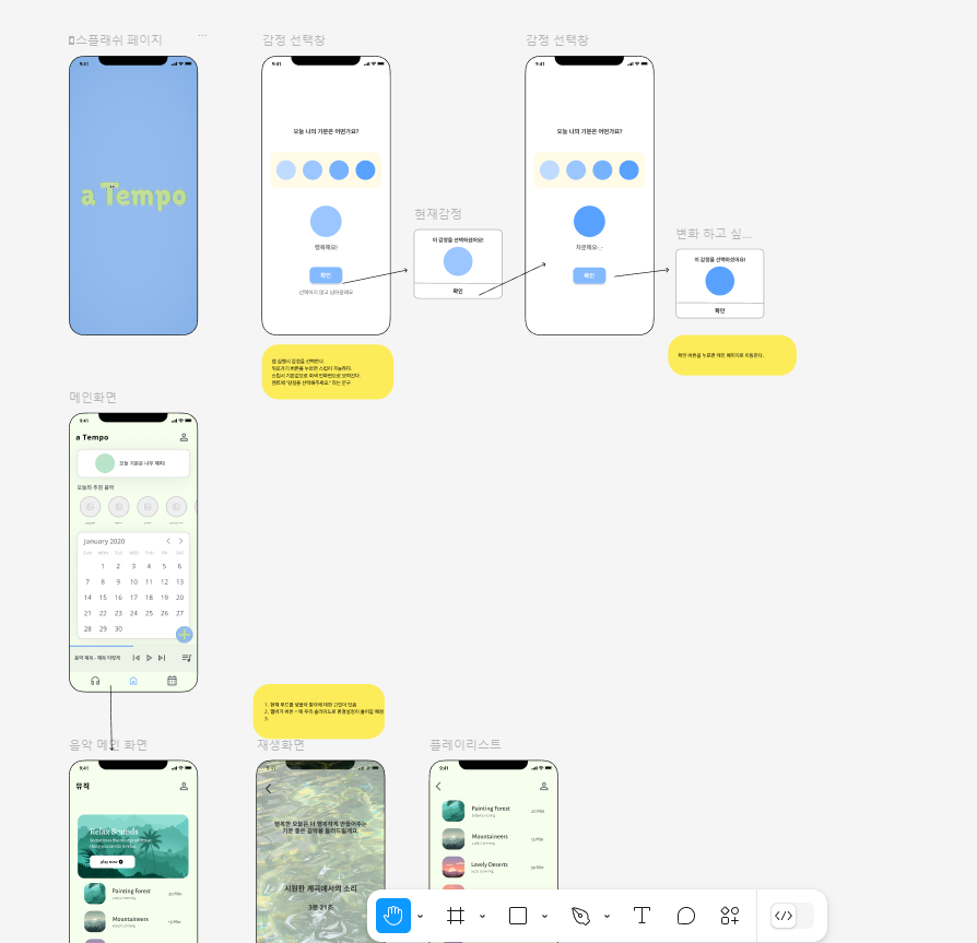 간단하게 와이어프레임 만들고 나니 화면을 구상하는건 말도안되게 쉬웠다. 특이한것을 넣으려하지 않았거든!