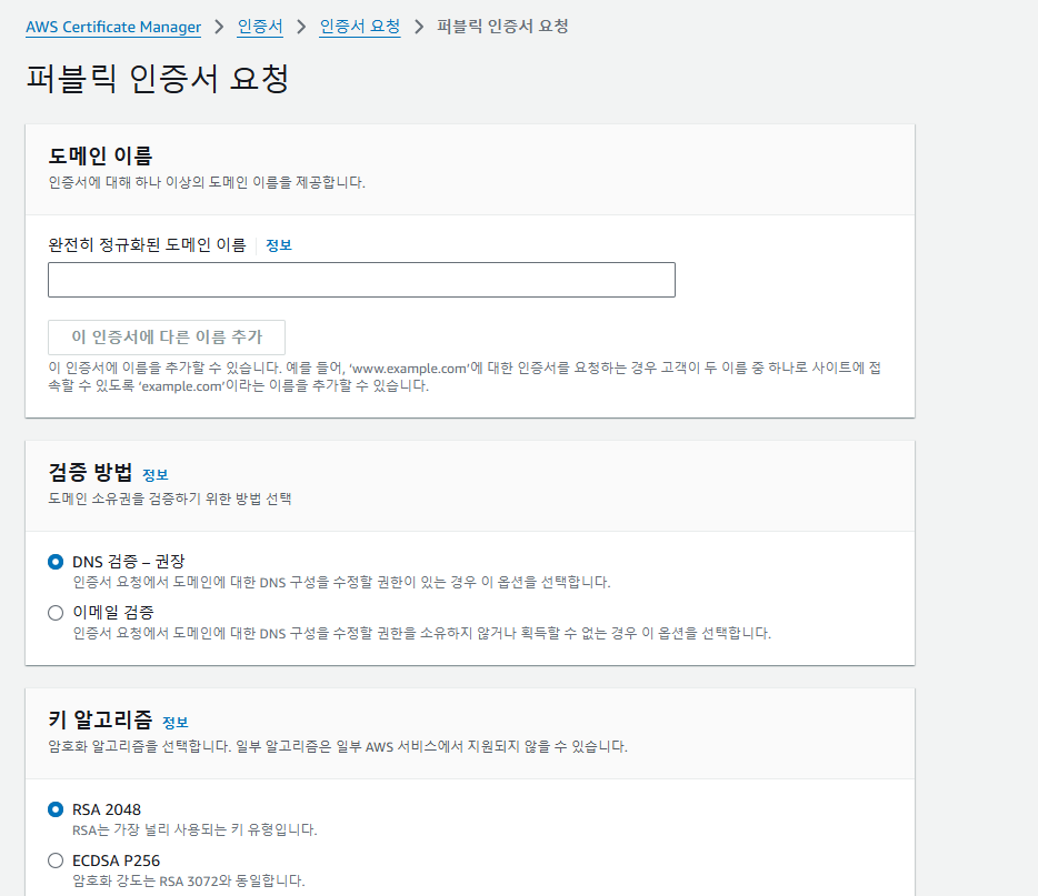 (실제로 나의 경우에는 Route 53에서 만든 도메인을 입력했다.)