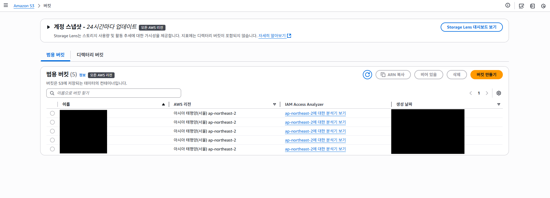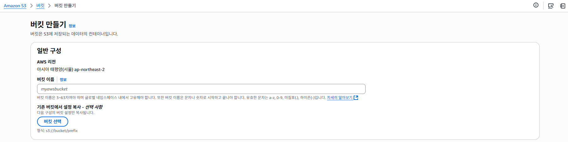 버튼을 클릭하여 버킷 생성 준비를 합니다.