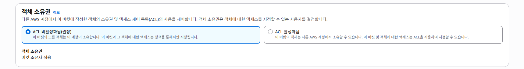 객체 소유권은 ACL 비활성화 시키는데 다른 계정은 접근하지 못하도록 하기위해 설정 한 것 입니다.
