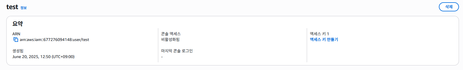 사용자 생성을 완료하고 사용자 목록 페이지에서 생성한 사용자로 이동하면 다음과 같이 확인할 수 있습니다.