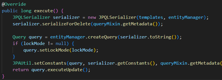 insert, update, delete는 리턴을 long으로 했는데 excute()메서드 내부를 보면