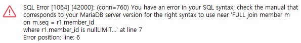 FULL JOIN은 결론부터 말하면 mariaDB에서 시도할경우 사용할 수 없다고 에러가 나온다.