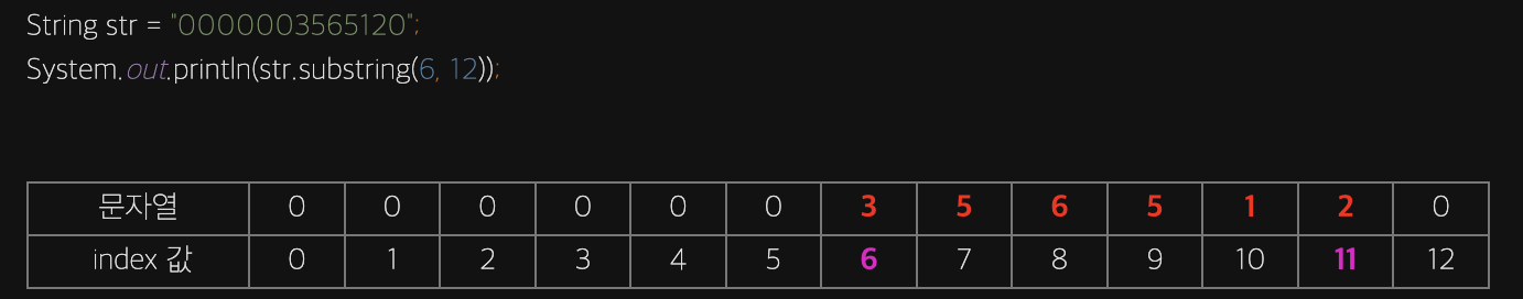 String에서 문자열을 자르고 싶다면 위 함수를 사용하면 되고 각각 파라미터의 의미는 아래와 같다.