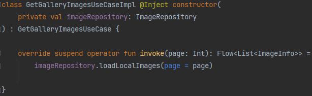 UseCase의 코드를 확인해보면 Flow<List<ImageInfo>>라는 Flow 를 반환해주고 있는데 _page를 .flatMapConcat() 해주면 해당 블럭 내부에서 _page value를 사용하며 내부에서 새로운 Flow 데이터를 반환할 수 있다.
