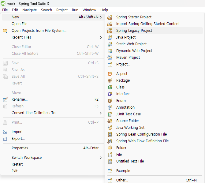 ✅ 파일 생성 경로 : File > New > Spring Legacy Project
