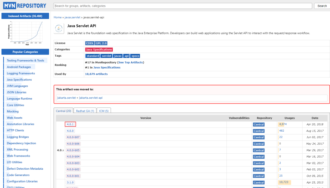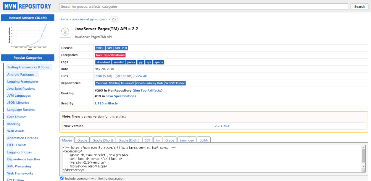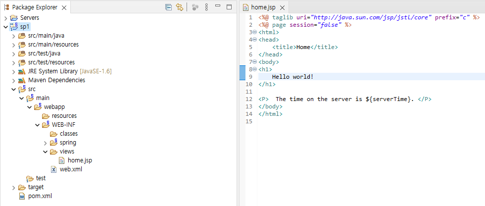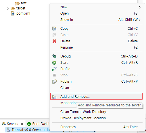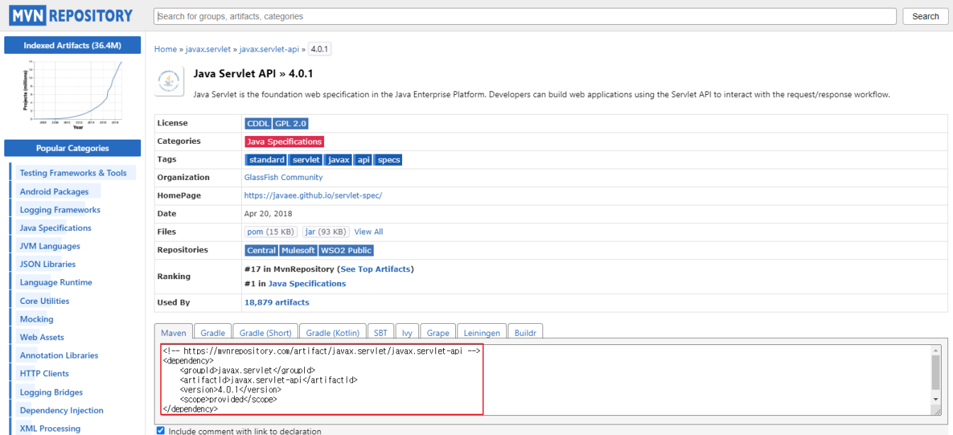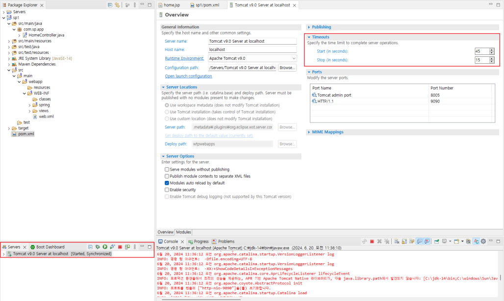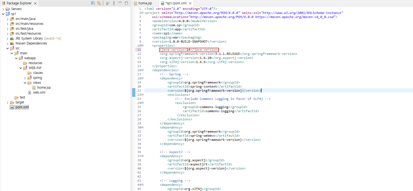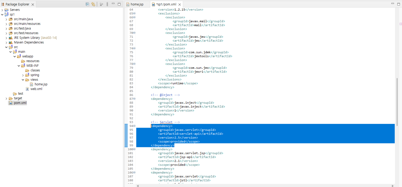 ✅ pom에서의 서블릿 코드 변경 완료 화면