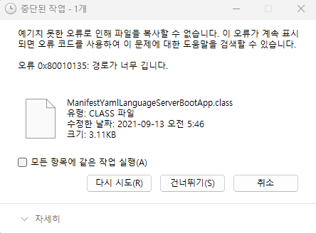 레지스트리 수정을 통한 긴 경로 지원 활성화