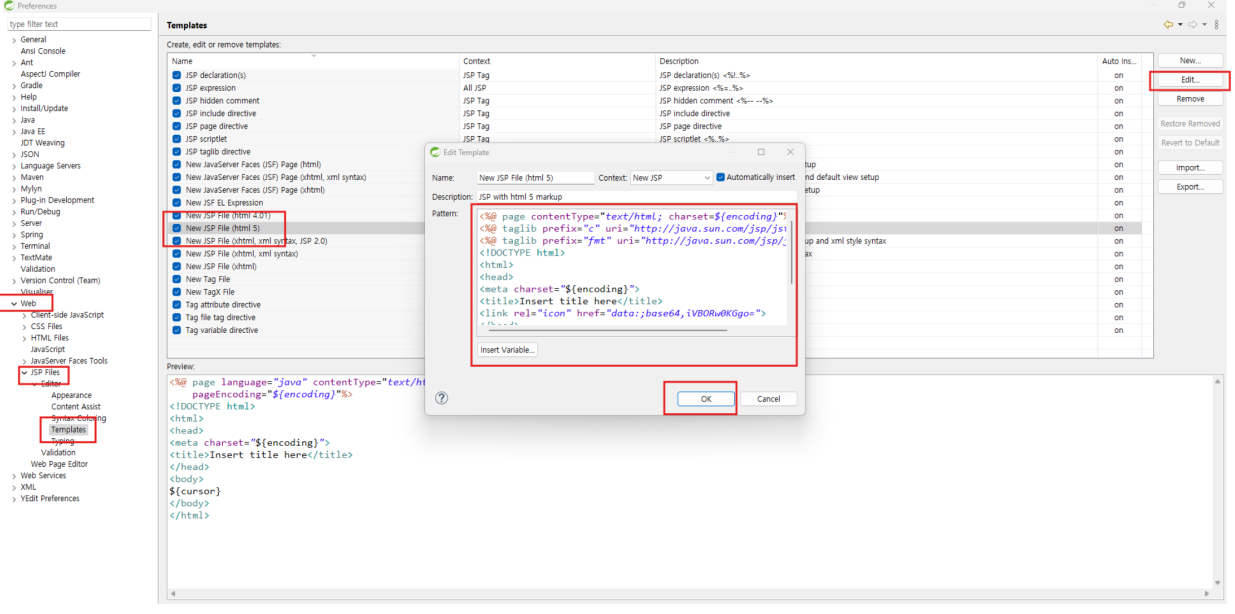 톰캣 -> conf -> server.xml -> 69번째 라인 포트변경 8080 to 9090(오라클과 중복시만) 및 URIEncoding="UTF-8"