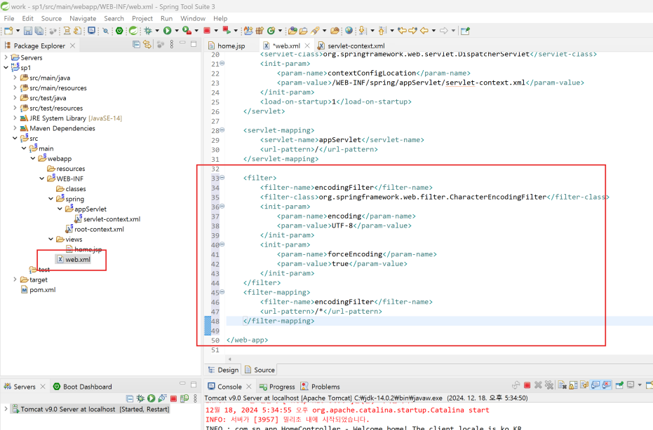 2) POST 방식에서 한글 인코딩을 위한 filter를 web.xml 에 추가