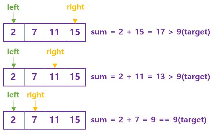 주어진 배열이 정렬되어 있으며, 두 개의 수를 이용해 target을 구한다는 점에 유의하자.