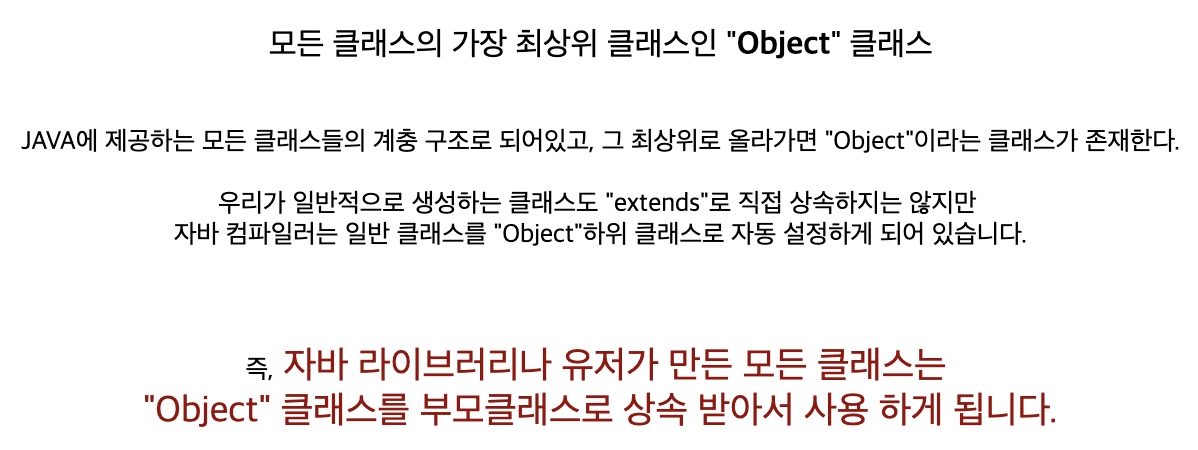 모든 클래스는 Object 클래스를 상속받고 있음의 표시가 생략되어 있다.