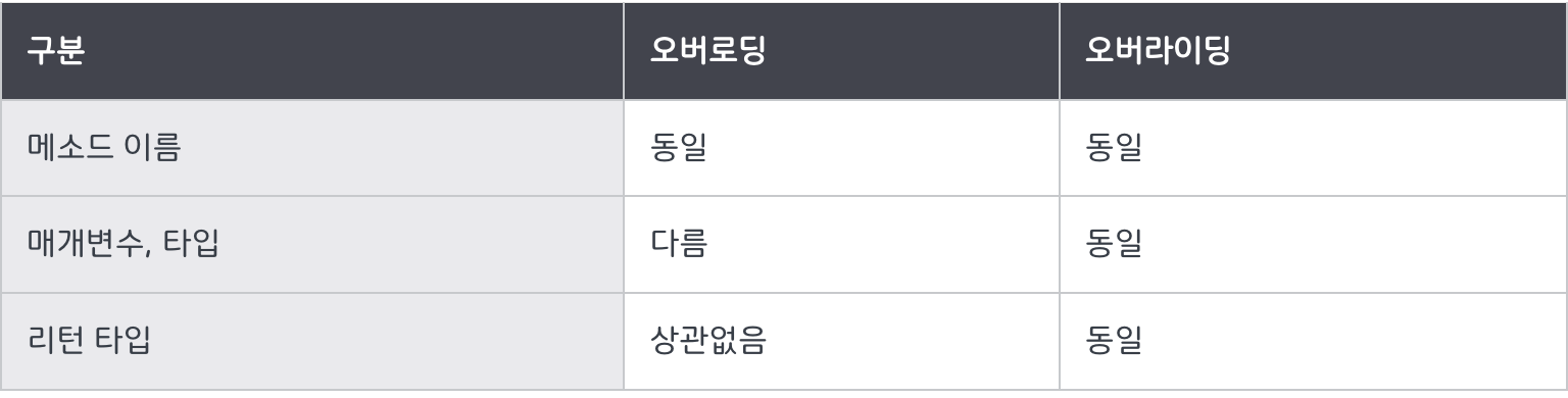 대표적으로 오버로딩, 오버라이딩이 있습니다.