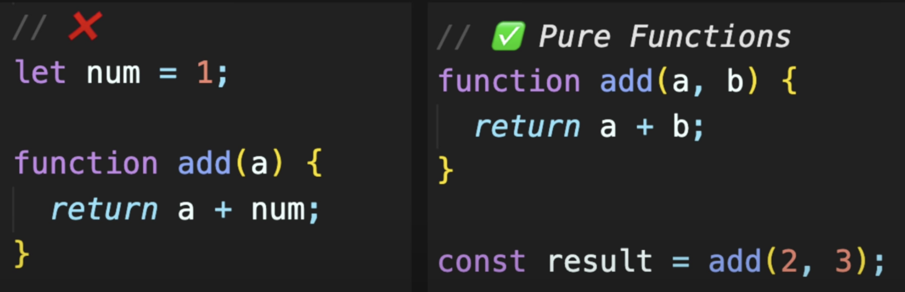 순수 함수: 출력이 입력에만 의존하는 것을 의미합니다.