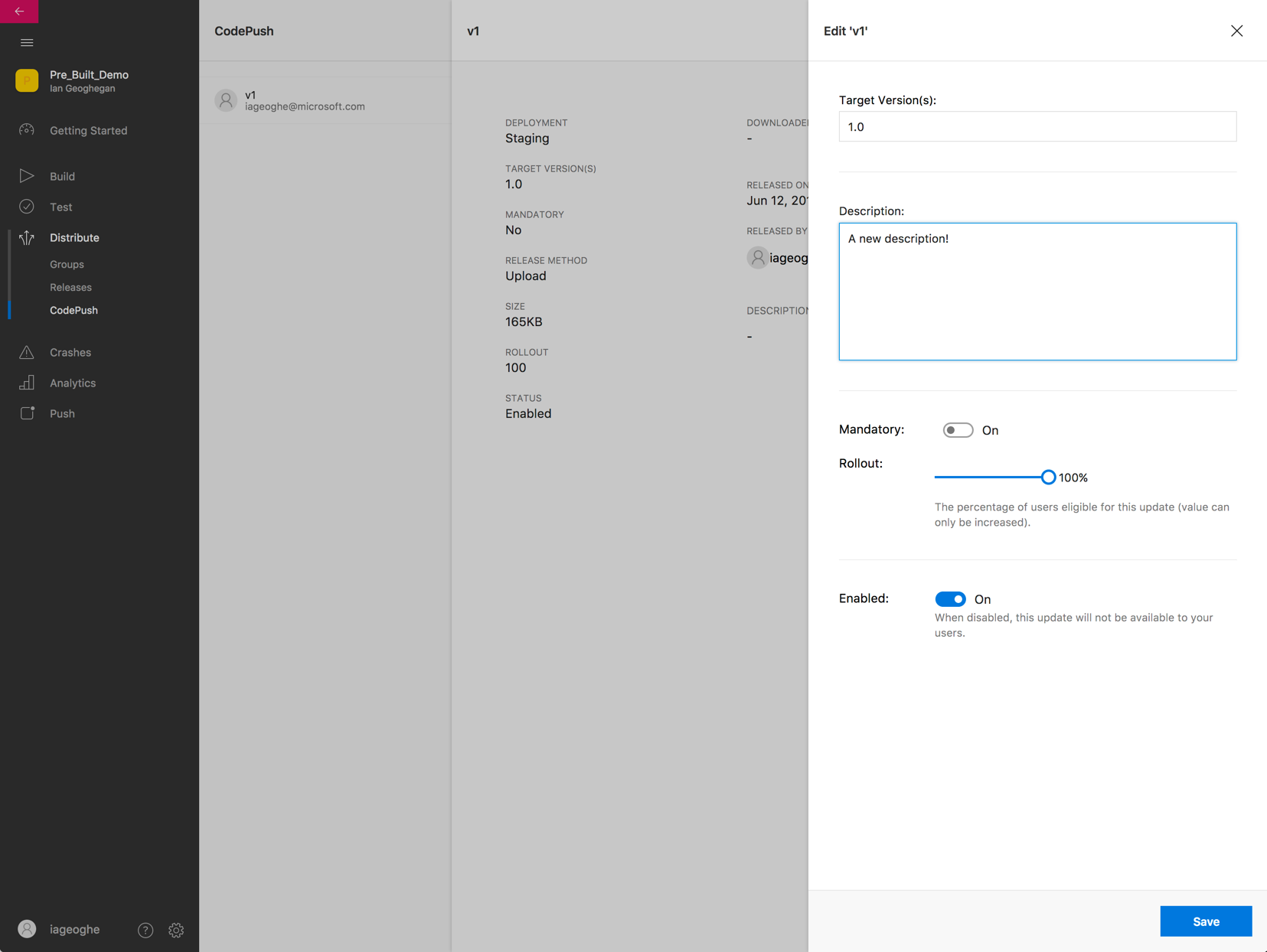 - App Center는 웹 UI를 통해 CodePush 업데이트를 시각적으로 관리할 수 있는 인터페이스를 제공했다.