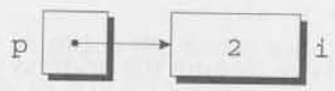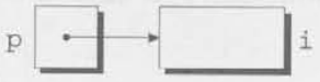 이 책에서는, 포인터 변수 p가 변수 i의 주소를 저장하는 것을 나타내기 위해, p의 내용물이 i를 가리키는 화살표를 표시하도록 할 것이다.