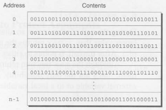 각각의 byte는 메모리에 있는 다른 byte와 구별하기 위해 고유한 주소(address)를 가진다. 만약 n bytes가 메모리에 있다면, 우리는 0부터 n-1까지의 범위의 숫자로써 주소를 생각할 것이다.