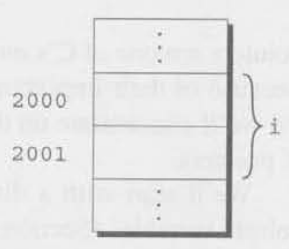 첫번째 byte의 주소는 변수의 주소라고도 불린다. 아래의 그림에서 변수 i는 주소 2000과 2001을 차지하는 byte인데, 그래서 i의 주소는 2000이다.