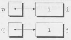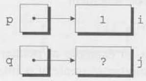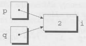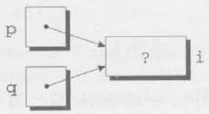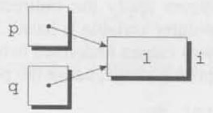위의 구문은 p의 내용물(i의 주소)을 q로 복사하는데, q가 p와 동일한 지점을 가리키도록 하는 효과를 낸다.
