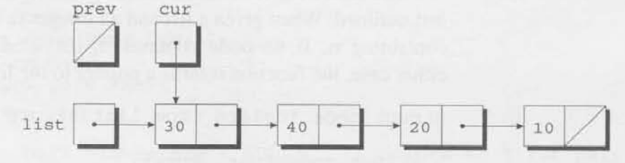우리가 node를 삽입할 때 리스트가 비어있다면 이 구문은 작동할까? 운좋게도 그렇다. 이게 참(true)이라는 사실을 확실하게 하기 위해, 빈 리스트에 2개의 node를 삽입하는 과정을 추적해보자. 숫자 10을 가지는 node를 먼저 삽입하고, 그 후에 20을 가지는 node를 삽입할 것이다. null pointer는 대각선으로 표현된다.