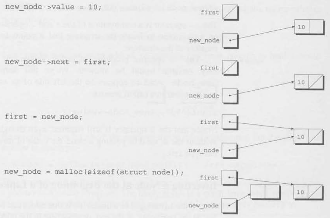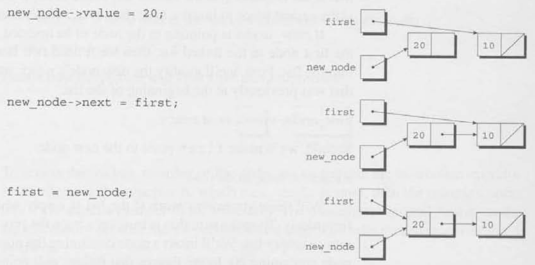 는 연결 리스트 내부의 첫번째 node를 가리킬 것이고, 그 후 리스트 내부로 노드를 삽입하기 위해 2개의 구문이 필요하다. 첫번째로, 새로운 node의 next