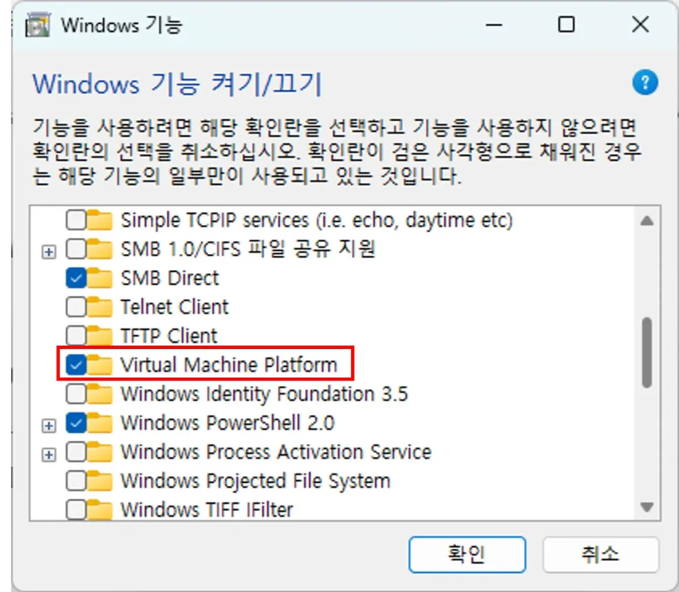 dism.exe /online /enable-feature /featurename:VirtualMachinePlatform /all /norestart