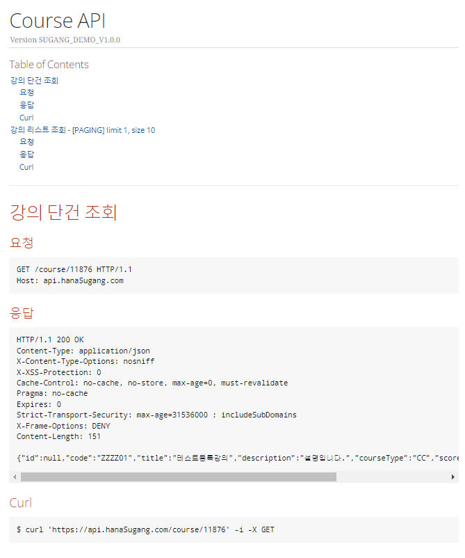 * CourseController - 문서화작업을 위한 테스트 클래스