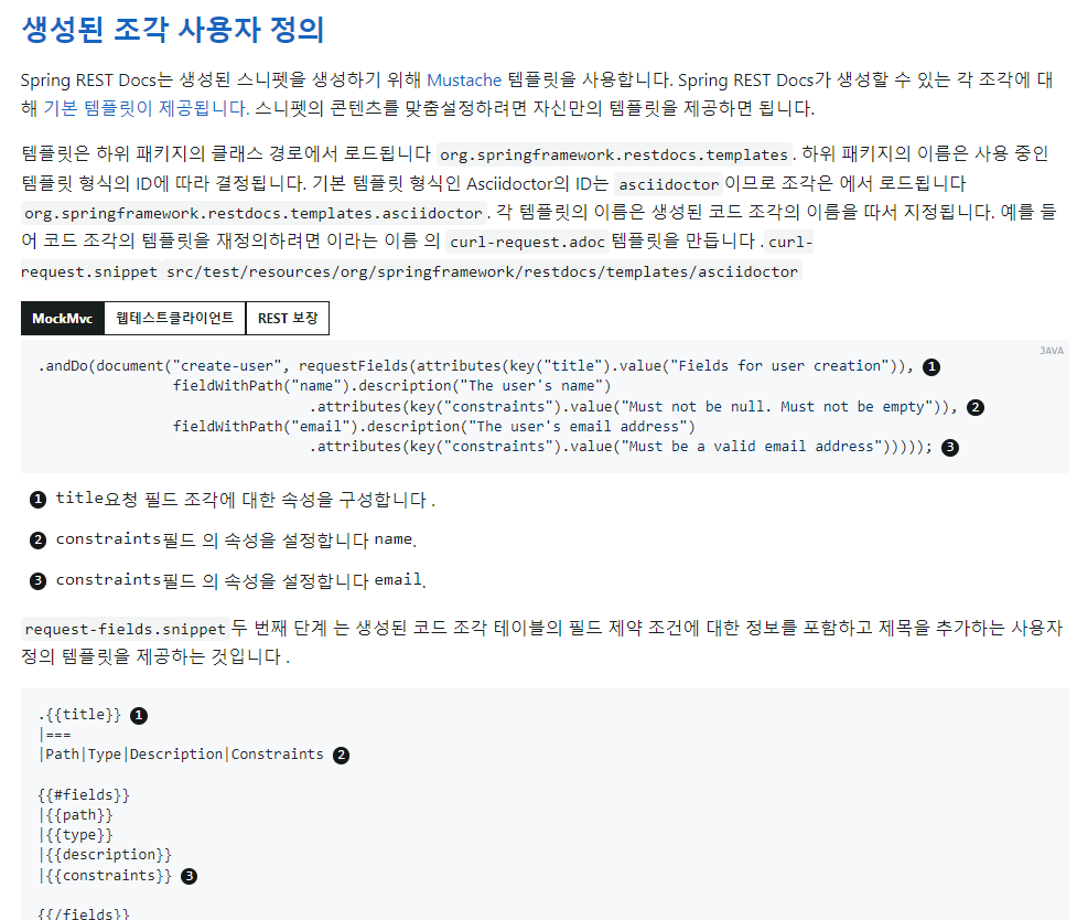 #Generating Documentation Snippets 부분을 참고하여 작성하였다.