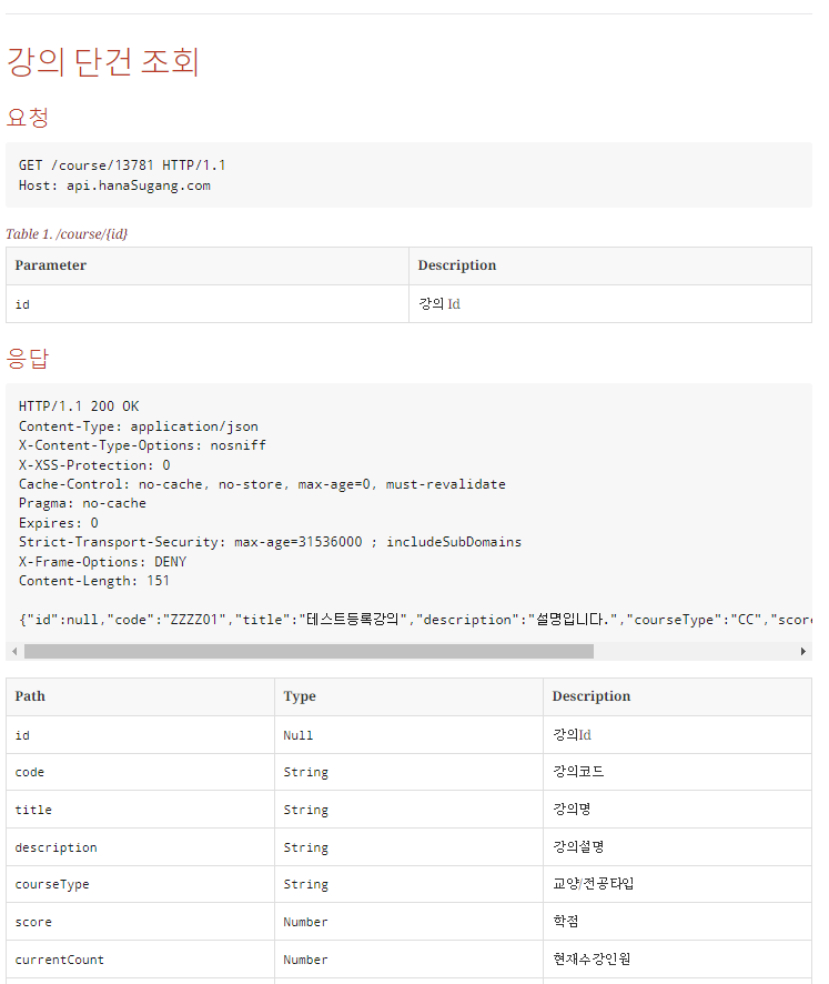 RequestDocumentation.parameterWithName("id").description("강의 Id")