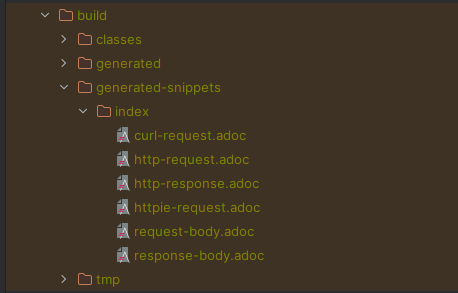 이전에 없던 asciidoc 파일들이 생성된다.(path-parameters.adoc, response-fields.adoc 등)