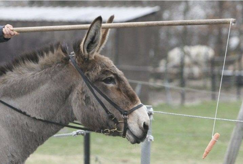 당근을 보고 따라가는 당나귀의 모습으로, 당근은 끊임없이 앞에 있고 당나귀는 도달할 수 없는 목표를 향해 움직이는 상황임. 이는 Non-stationary target의 개념을 비유적으로 표현한 것임. 당나귀가 목표를 향해 계속 나아가지만, 목표가 고정되지 않고 계속 변화하는 상황은 학습 목표가 끊임없이 바뀌는 딥러닝의 상황과 유사함.