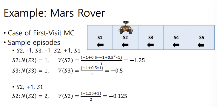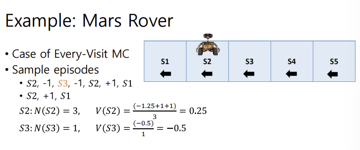- MC는 에피소드 전체의 평균 리턴 값을 통해 상태릐 가치를 학습함