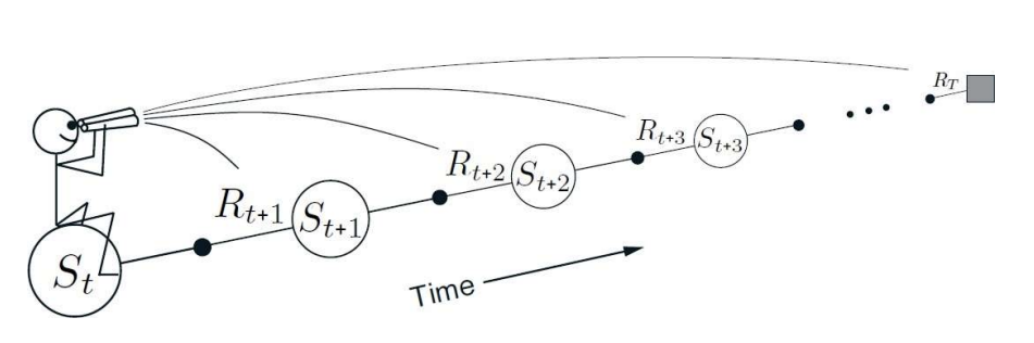 - 현재 상태에서 미래로 이어지는 여러 스텝을 고려함