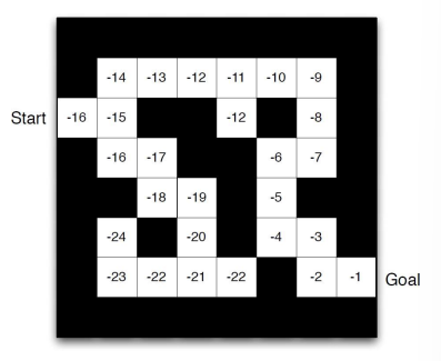 - 각 state s에서 숫자는 value Vπ(s)를 나타낸다.