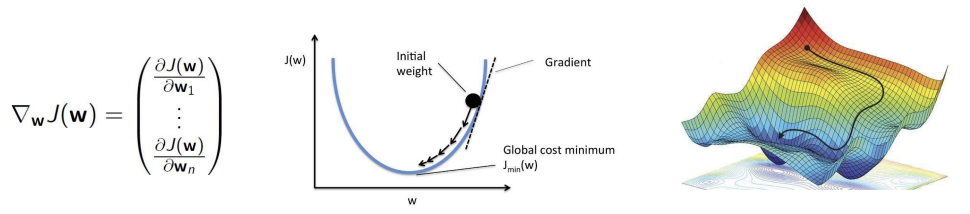 - 이 벡터는 각 파라미터 w_i에 대해 미분값을 가지며, 기울기의 방향이 곧 함수가 가장 빠르게 증가하는 방향이 됨.