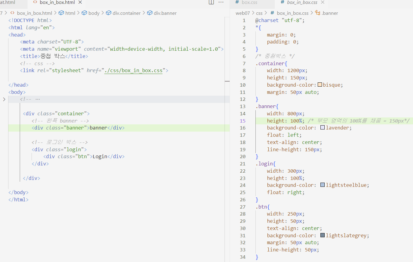 감싸고 있는 박스를 부모박스라 부르고, 안에 들어있는 박스를 자식 박스라고 부른다.