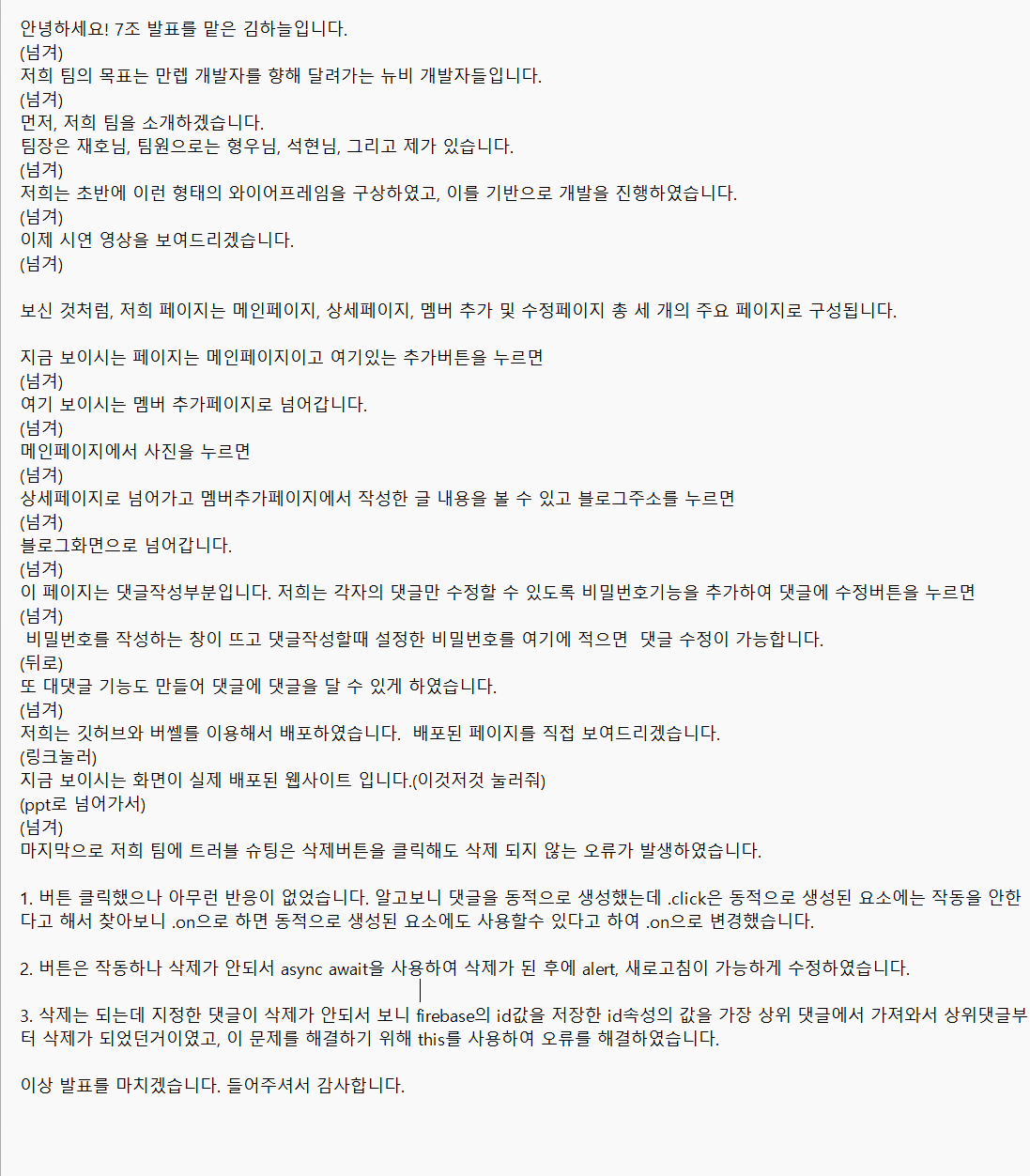 PPT토대로 대본 작성했는데 노트북 이슈로 렉걸리는 바람에 시간이 많이 지체되어 그냥 망했다구한다...