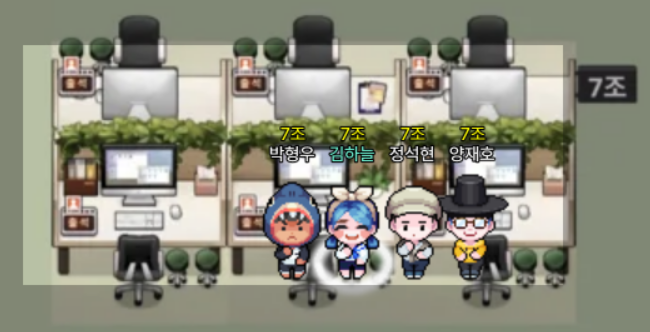 - 개발 능력에 따른 분배가 적절하여 초보자도 일정 부분을 맡아서 할 수 있었습니다. 물론 한 페이지 전부를 도맡아 각자 능력에 맞게 꾸미는 것도 개발자로서 좋은 경험이었겠지만 만약 그렇게 분배를 하였다면 오히려 팀원에게 모르는 부분에 있어서 도움을 요청하기 힘들었을 수도 있겠다 싶습니다.