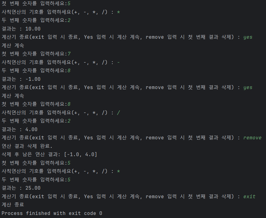 System.out.println("삭제 후 남은 연산 결과: " + calc.getResults()); // 삭제 후 남은 연산 결과 출력