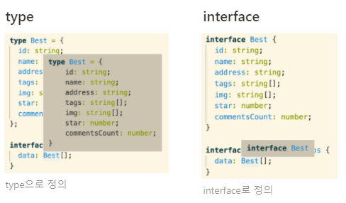 객체의 타입을 정의할 때, type 별칭과 interface 모두 사용할 수 있습니다.