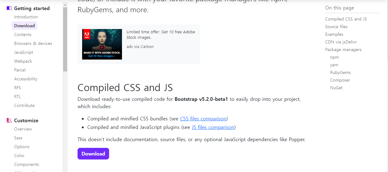 <!doctype html> <html lang="en"> <head> <meta charset="utf-8"> <meta name="viewport" content="width=device-width, initial-scale=1"> <title>Bootstrap demo</title> <link href="https://cdn.jsdelivr.net/npm/bootstrap@5.2.0-beta1/dist/css/bootstrap.min.css" rel="stylesheet" integrity="sha384-0evHe/X+R7YkIZDRvuzKMRqM+OrBnVFBL6DOitfPri4tjfHxaWutUpFmBp4vmVor" crossorigin="anonymous"> </head> <body> <h1>Hello, world!</h1> <script src="https://cdn.jsdelivr.net/npm/bootstrap@5.2.0-beta1/dist/js/bootstrap.bundle.min.js" integrity="sha384-pprn3073KE6tl6bjs2QrFaJGz5/SUsLqktiwsUTF55Jfv3qYSDhgCecCxMW52nD2" crossorigin="anonymous"></script> </body> </html>