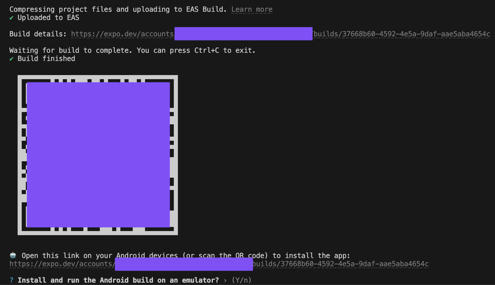 Build details 에 해당하는 링크는 Expo Dashboard 로 이동하여 빌드에 대한 상세 내용을 확인할 수있다.