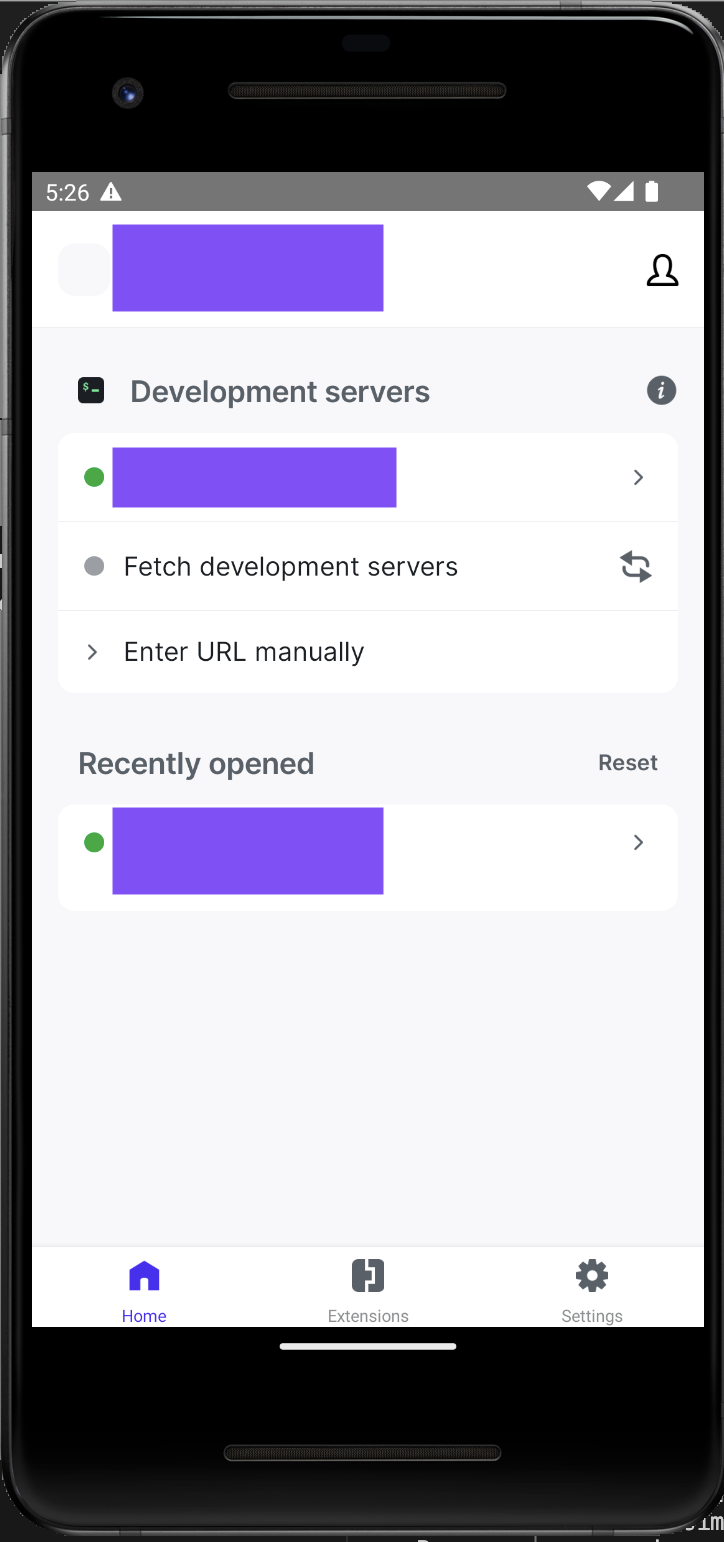 이제 빌드를 생성하고, 기기 혹은 Emulator 에 설치했으니, 이를 실행해보겠다. Development server 에서 빌드한 결과물을 실행해 볼 수 있다.