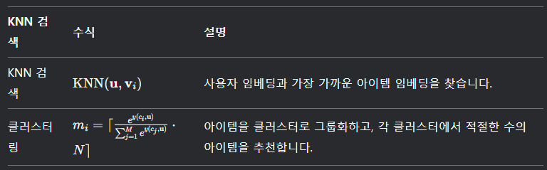 | KNN 검색 (FAISS) | 사용자 임베딩과 아이템 임베딩 간의 유사도 계산 |