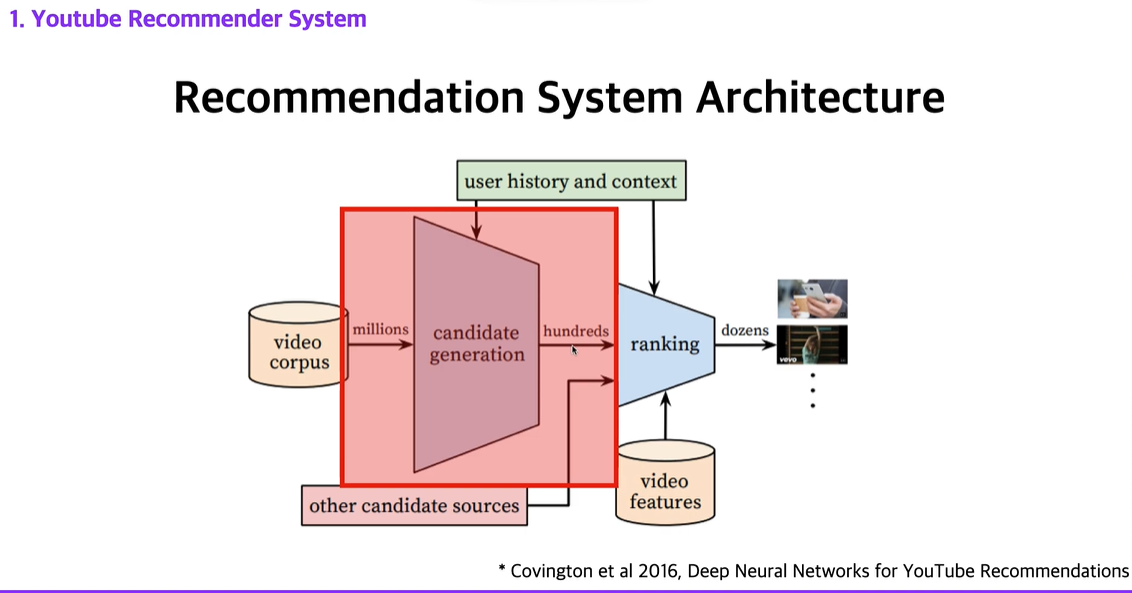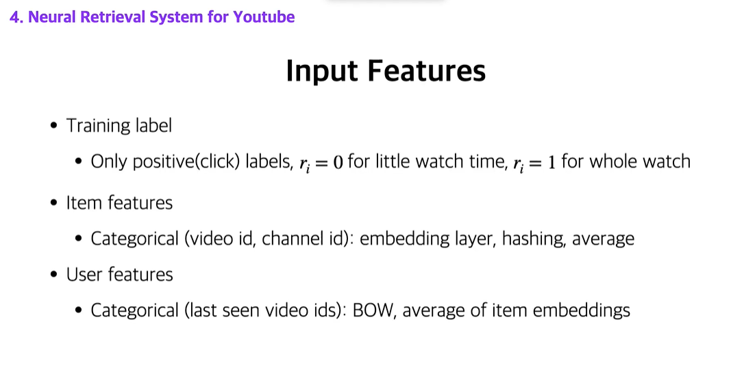 - user vector가 video vector의 임베딩 크기보다 훨씬 크다.