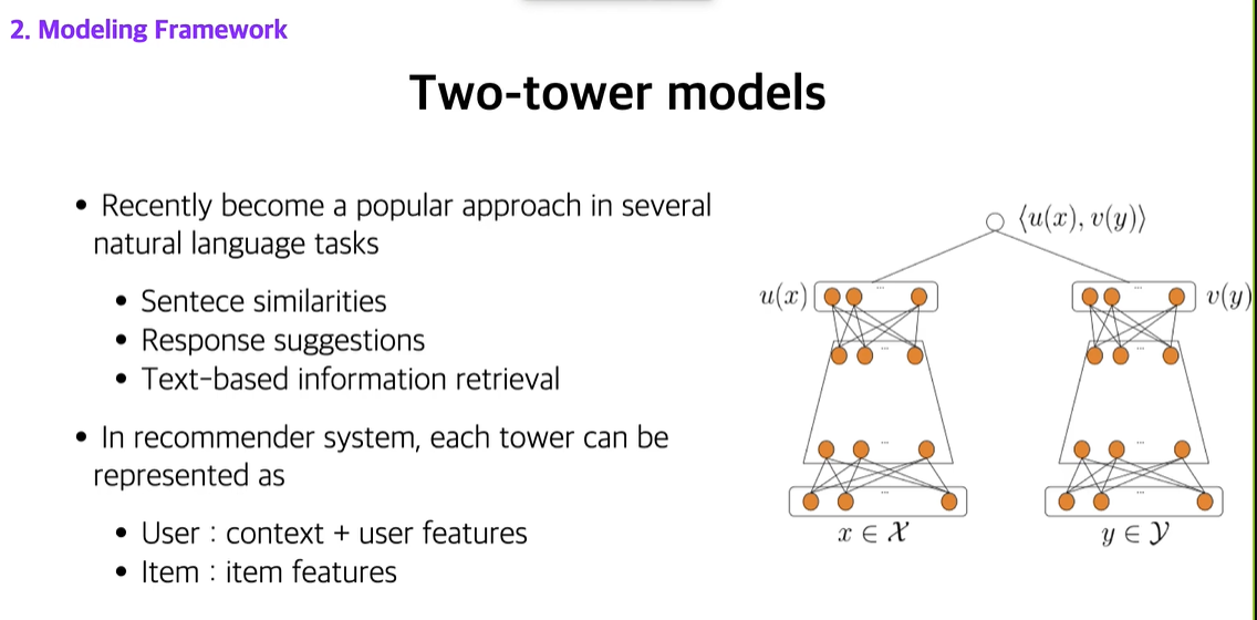 - 추천 시스템에서는 유저 타워 x 아이템 타워
