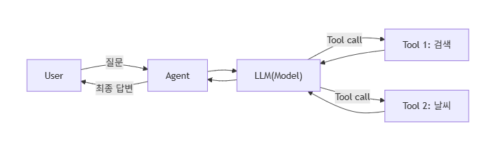 이게 바로 Agents 문서에서 말하는 “도구를 루프 안에서 반복적으로 사용하는 에이전트”입니다. ([LangChain Docs][1])