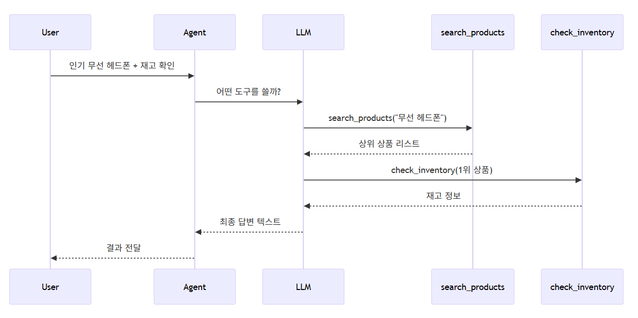 search_products : 인기 상품을 검색check_inventory : 특정 상품 재고 확인문서에도 비슷한 예시가 나오는데,