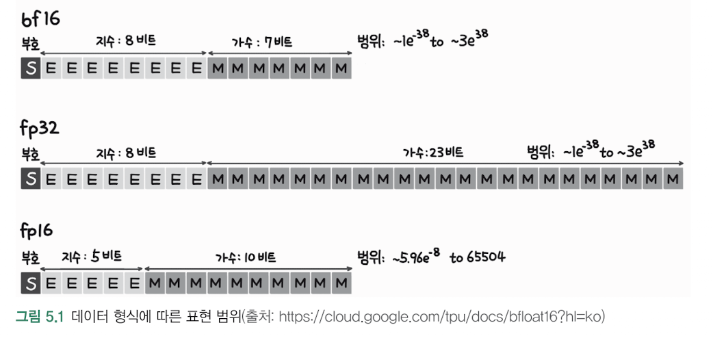 단, bf16은 가수부가 7비트로 짧아서 정밀도는 낮지만, LLM 학습에서는 이 정도의 정밀도 손실이 성능에 크게 영향을 미치지 않는다고 알려져 있습니다.