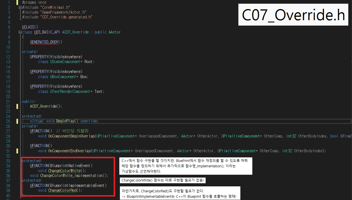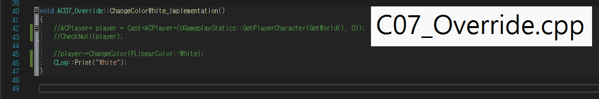 ChangeColorWhite_Implementation(); 함수를 만들고, 이를 cpp에 선언해야 한다.